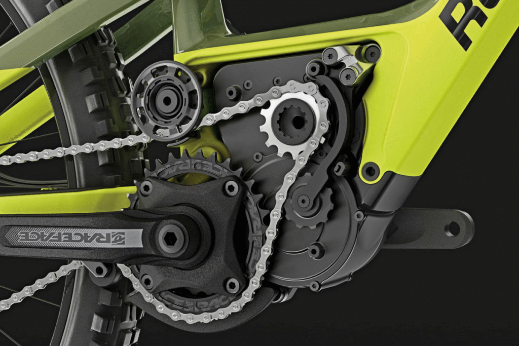 Zgradba in tehnični standardi omogočajo uporabo tudi na težjih električnih gorskih kolesih. - Kompatibilna z do 29×2.8″ pnevmatikami – več oprijema in nadzora.